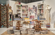 注目すべきは服が時空を超えて旅する展示。「会場に再現したアトリエからデザインが生まれ、テキスタイルとなり、洋服に形を変え、人の手に渡って思い出になる」という、クリエイティブな旅路を巡ることができる壮大な空間だ。