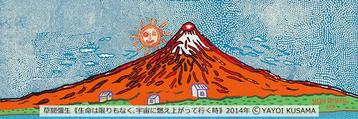 草間は1993年の第45回ヴェネチア・ビエンナーレにおいて日本を代表する作家として世界の舞台に立ったが、その前後で積極的に版画制作に取り組んだことも現在の評価につながる大きな要因となっている。79年には初めて版画作品を発表。そこには米国から帰国後の死や苦悩をテーマにした作品とは対照的に、華やかなモチーフが色彩豊かに表現されていたという。近年は、富士山を主題に浮世絵の木版画の技法を用いた連作や、モノクロームの大型シルクスクリーン作品「愛はとこしえ」シリーズなどを発表している。