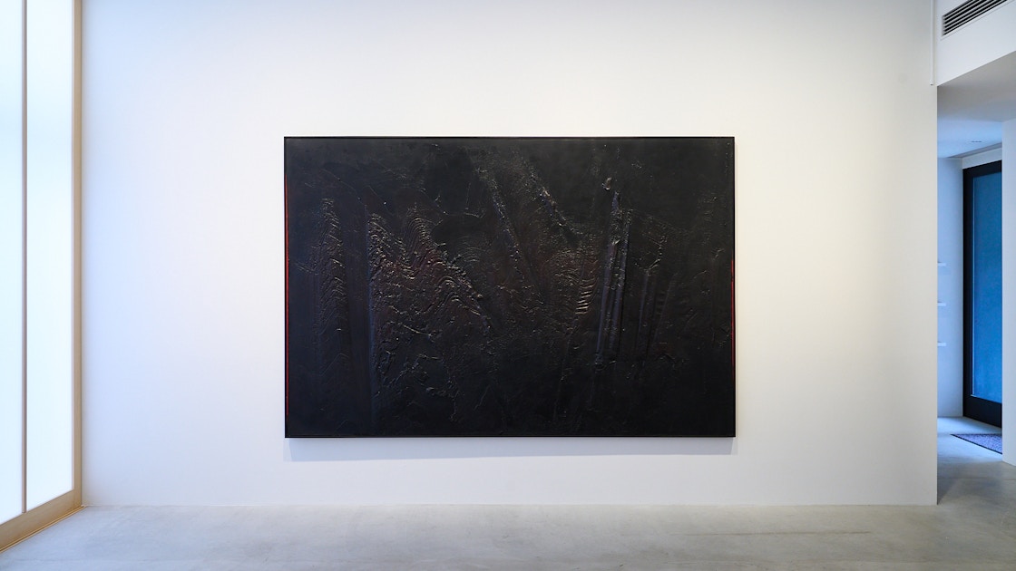 具体美術協会の会員であった金山明(1924〜2006)と白髪一雄(1924〜2008)の生誕100周年を記念する展覧会「プラス・マイナス」が、表参道のファーガス・マカフリー東京で12月28日まで開催中だ。
