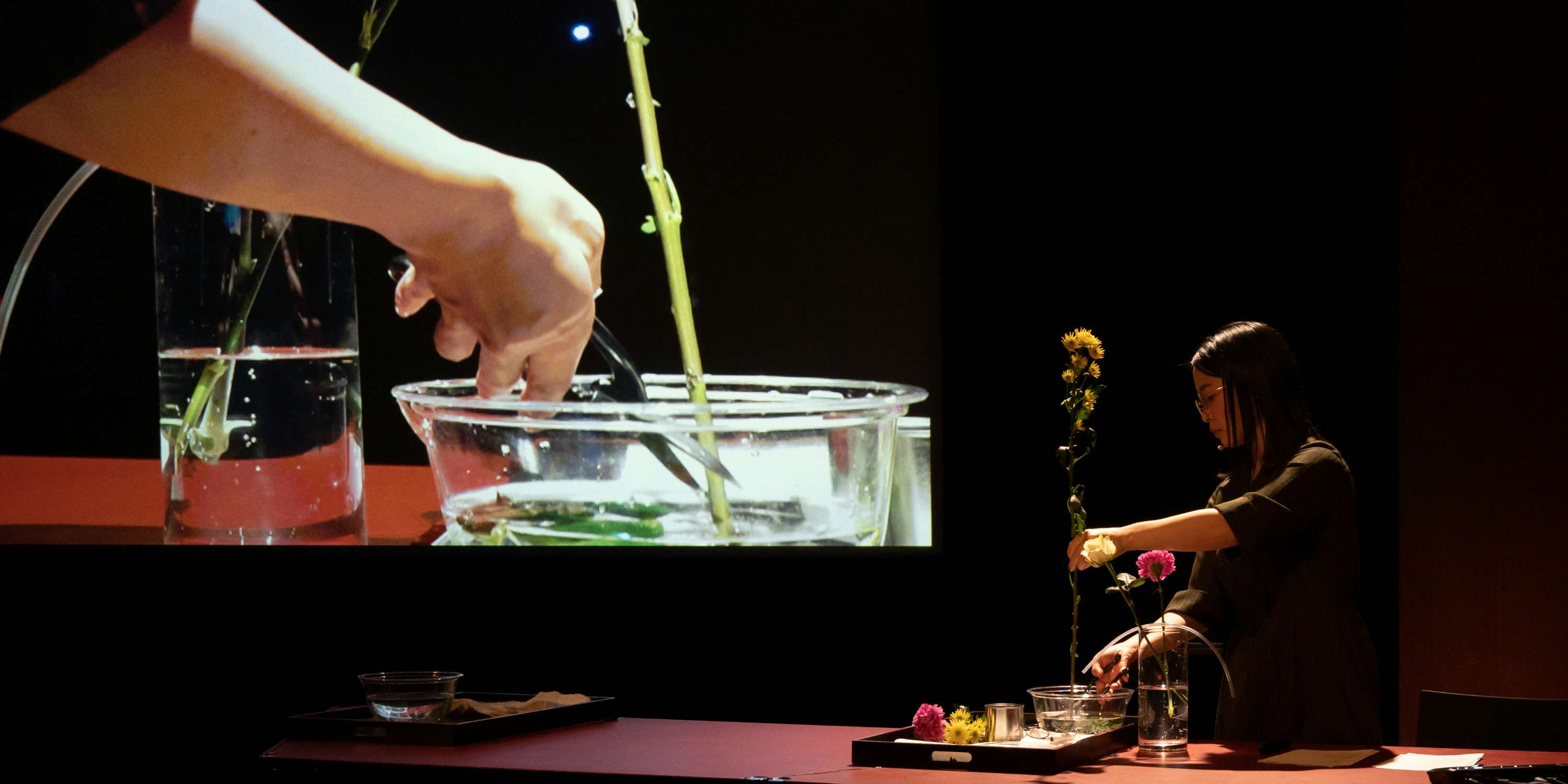 レバノン出身の映画監督でアーティストのジョアナ・ハジトゥーマとカリル・ジョレイジュによるレクチャーパフォーマンス《オルトシアのめくるめく物語》は、同国のナハル・エル・バーリド難民キャンプで発見された古代ローマ都市オルトシアの物語を巡るもの。2007年のレバノン国内での武力衝突後、津波によって消失したオルトシアの遺跡が明らかになったが、その発掘作業は難民たちにとって再び強制移住を強いることとなり、このジレンマを同作に反映させている。ハジトゥーマとジョレイジュは、この歴史的な発見とその影響を舞台上で再構築し、未来に向けたタイムカプセルとしての意味を込めている。