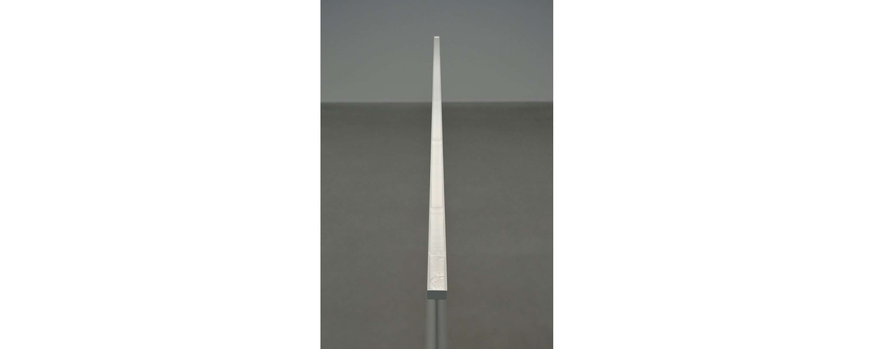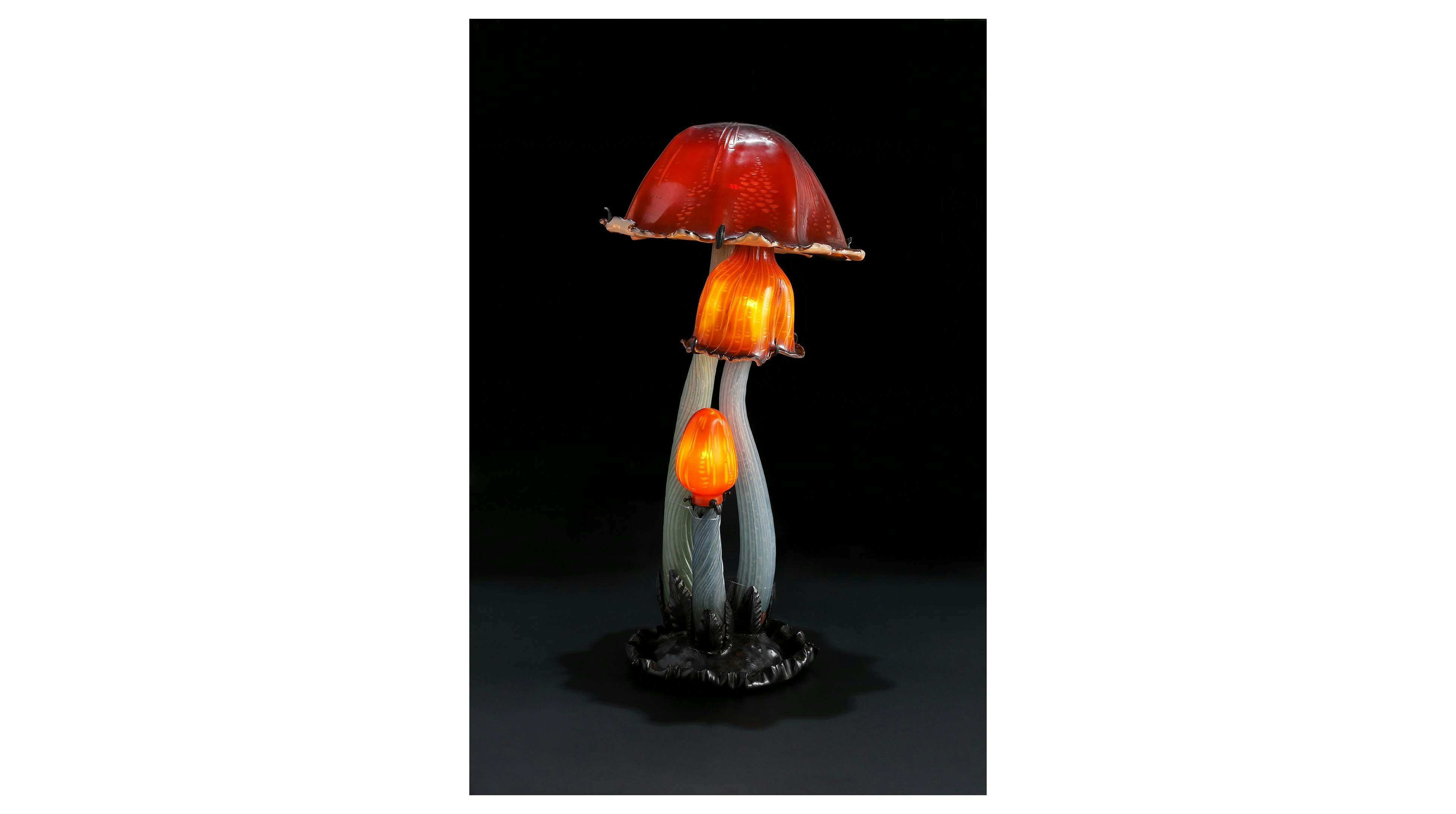 いっぽうの三嶋は、旧朝香宮邸のアール・デコ様式に着目した作品を発表。例えば、本館大広間で展示されている《光の海》(2024)は、天井に設置された40個のライトに呼応するかたちで並べられた40点の透明なガラスの作品で、光の揺らぎや厚みを繊細に表現し、空間全体に広がるエネルギーを生み出した。