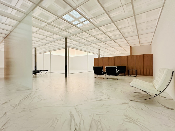 本展では、ジオ・ポンティ・アーカイヴスの協⼒のもと、おもにポンティがミラノ、デッツァ通りの⾃宅のためにデザインした家具から、モルテーニにより復刻されたアームチェア、コーヒーテーブル、ブックシェルフと、床に⼤胆に導⼊されていたセラミックタイルの再現を通して、ポンティ独⾃の空間世界をインスタレーションとして紹介。また、およそ60年にわたる巨匠の仕事を振り返る⼤パネルには、1920年代のリチャード・ジノリの磁器製品やオリジナルドローイングの展⽰のほか、フランチェスカ・モルテーニ監督によるドキュメンタリー映像『Amare Gio Ponti』も上映されている。