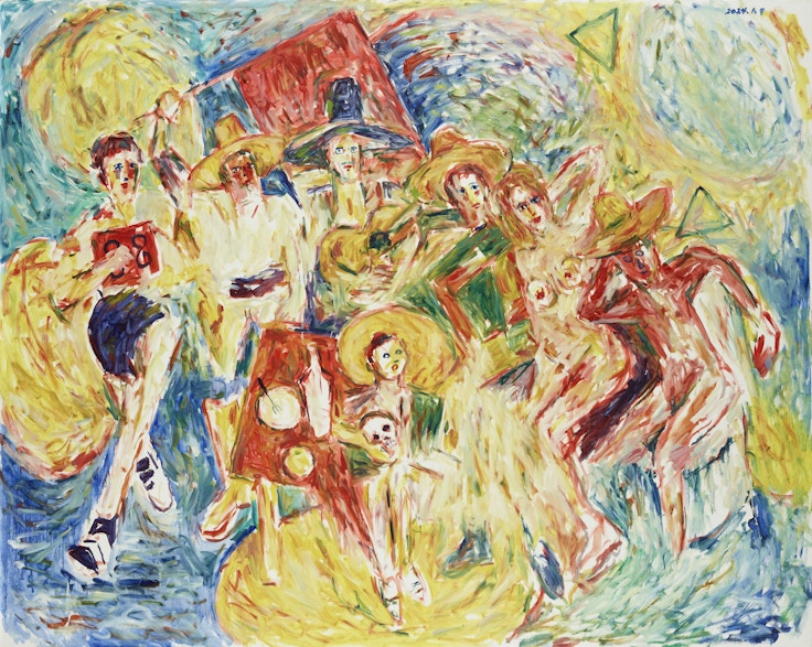 この写真にインスピレーションを得て、横尾は1994年に《記憶の鎮魂歌》(横尾忠則現代美術館蔵)という大作を描いており、本展はこの作品から始まる。