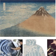 ⻲田富染工場/Pagong 京友禅「男浪」制作の様子、⻲田富染工場/Pagong 北斎柄テキスタイルを使用したカットソー「男浪」