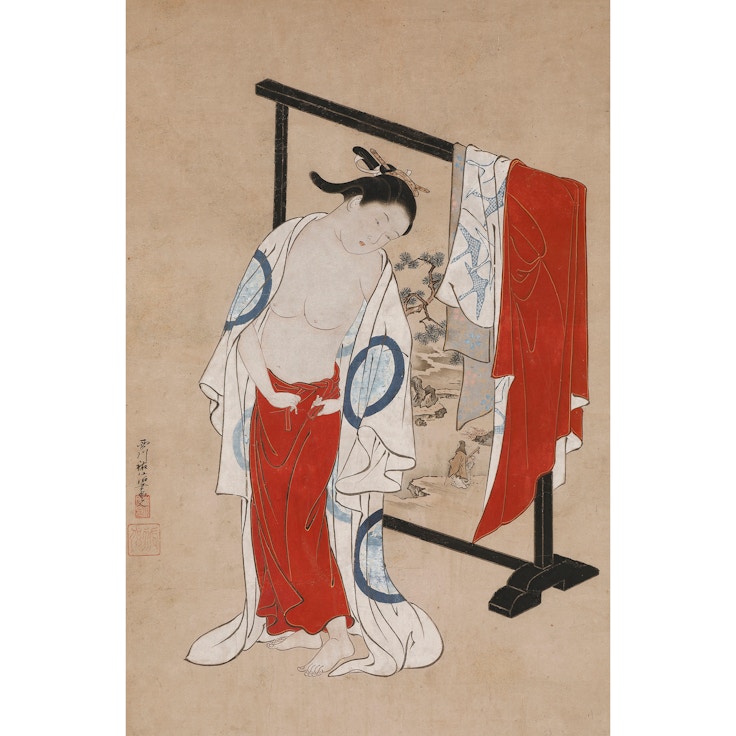 第3章「らぶらぶする」では、日本美術作品を通じて描かれてきた様々な恋愛模様を紹介する。人物相関図や場面解説を手掛かりに、作品の主題となったり密かに暗示されたりした、多様かつ複雑な愛のかたちをも目の当たりにすることができるだろう。