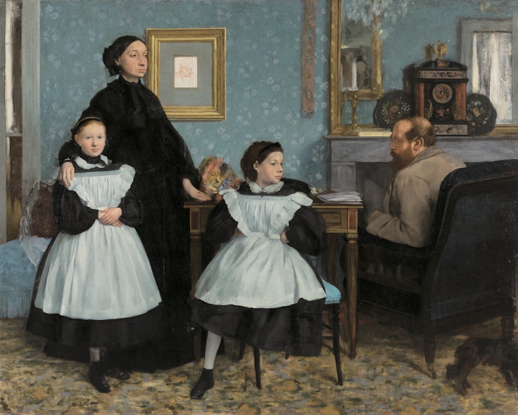 印象派は人物を日常的な環境のなかに描き出し、その人となりや社会的な属性を室内の道具立てによって表現。衣装、家具、調度品などを巧みに描写することによって、社会的なステータスを表明した。さらに家族の肖像画では家庭の親愛のみならず、近代的な家族観の発露や心理的なドラマも描き出していた。本章ではフレデリック・バジール、エドゥアール・マネ、クロード・モネ、ジェームズ・ティソ、ポール・マテといった画家たちの肖像画から、こうした背景を読み解いていく。また、若きエドガー・ドガの代表作《家族の肖像(ベレッリ家)》(1858-1869)が日本で初めて展示される機会となる。