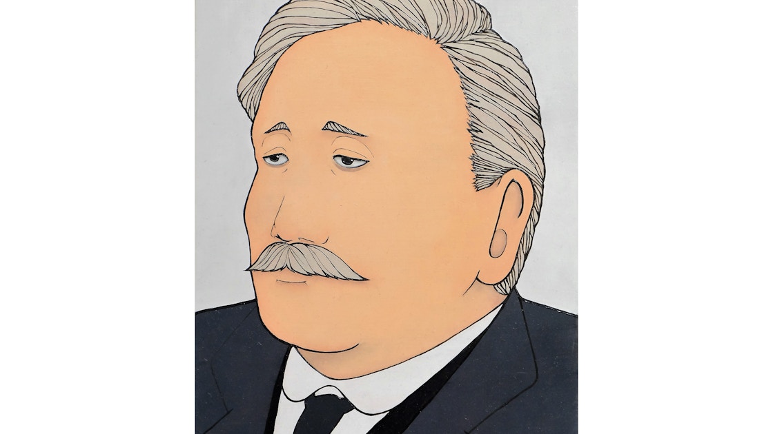 アニメ絵風のフラットな塗りで描かれた中年男性の肖像画。そこに描かれているのは、作者の想像によってつくりだされた架空の国の政治家たちだ。