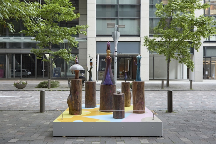例えば、木彫を中心に愛らしさや恐れなどを内包した作品を制作している中村萌の《Whirling Journey》は、頭の中でめぐる思考や空想、その先にある希望を形にしたもの。1本の楠の丸太を原型にしており、その力強いフォルムが生かされた。中村にとって屋外展示の作品は今回が初めてとなった。