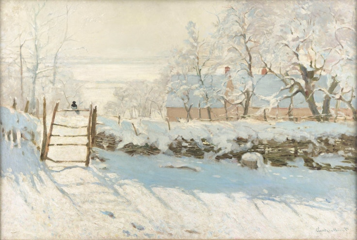 セクション3「《かささぎ》とその周辺─雪の色」では、モネが雪からインスピレーションを受けて描いた作品が登場する。浮世絵の雪景と同様に、繊細な色彩の面を重ねることで奥行きを表現したさまを間近で見ることが可能だ。