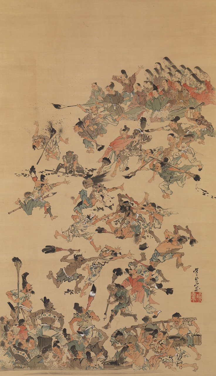暁斎は、神仏画や戯画、動物画、妖怪画など多岐にわたる主題を手がけ、その卓越した筆致と機知に富んだ発想で、時代を超えて高く評価されている。本展では《地獄太夫と一休》《百鬼夜行図屛風》《蛙の学校》など代表作のほか、保存状態の良い版画群も展示予定だ。