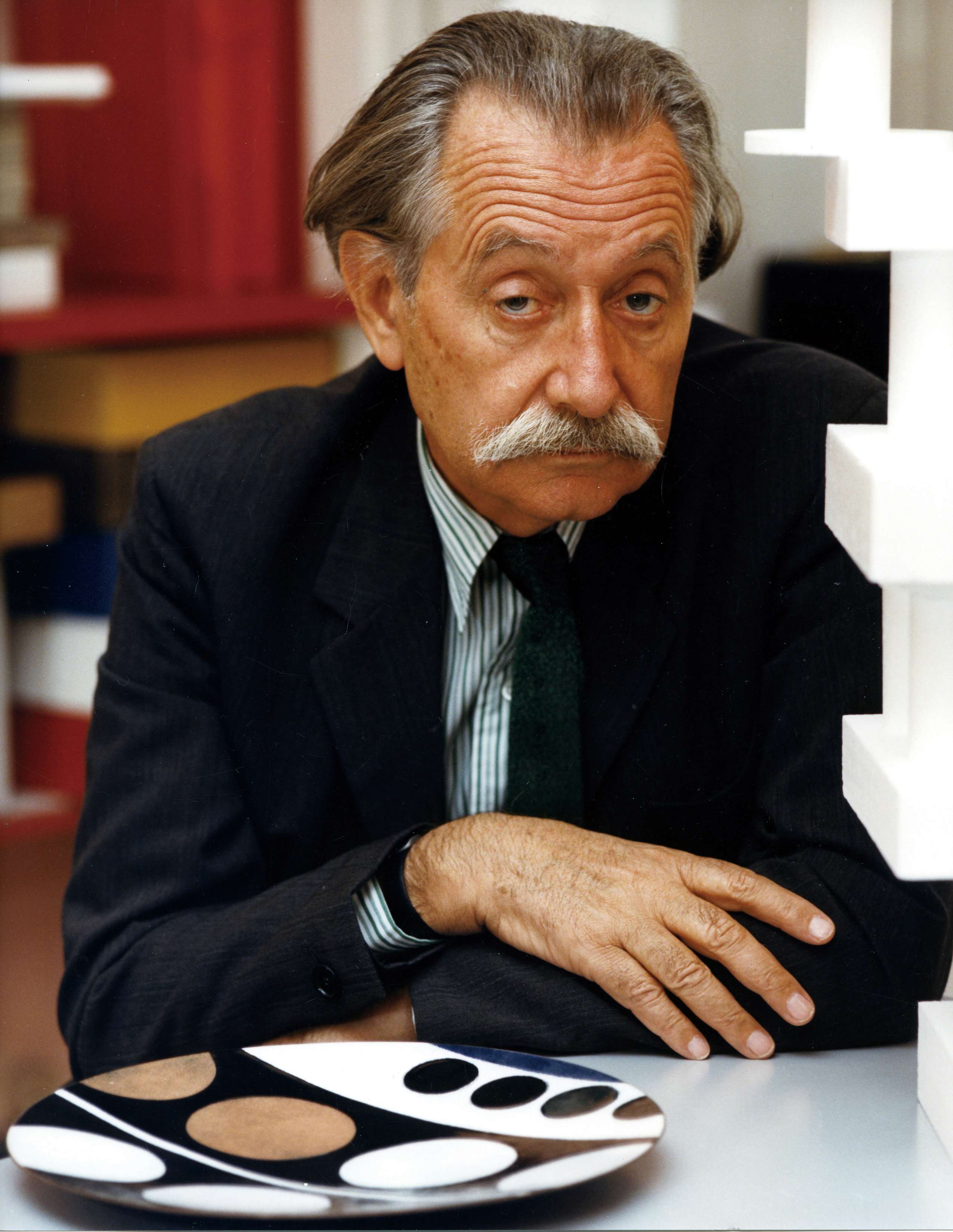 ソットサスは1917年オーストリア・インスブルック生まれ。1950年代からオリベッティやポルトロノーヴァのために数々の名作を手がけ、80年代には自身が発起人となって国際的なデザイナー集団「メンフィス」を結成。大胆な色彩と形態によるデザインの数々でセンセーションを巻き起こした。85年頃にメンフィスを離脱して以降も遊び心溢れる挑戦的なデザインをつくり続け、2007年に90歳で没。生誕100周年の2017年には欧米の美術館を中心に大規模な回顧展が開催されるなど、その評価はますます高まっている。