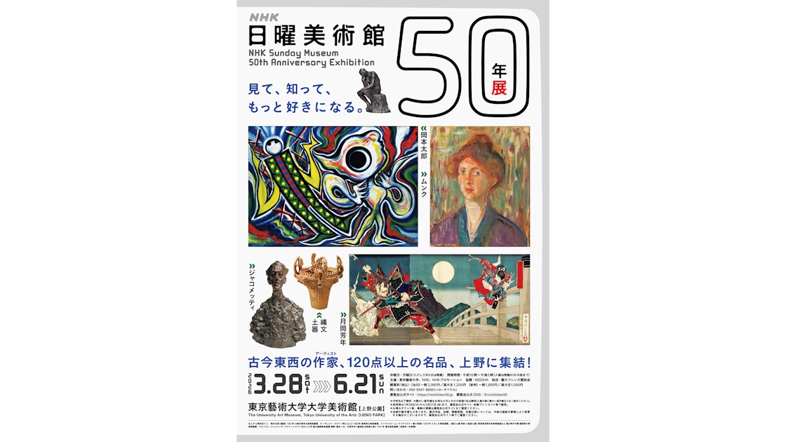 東京・上野にある東京藝術大学大学美術館で、「NHK日曜美術館50年展」が開催される。会期は3月28日~6月21日。