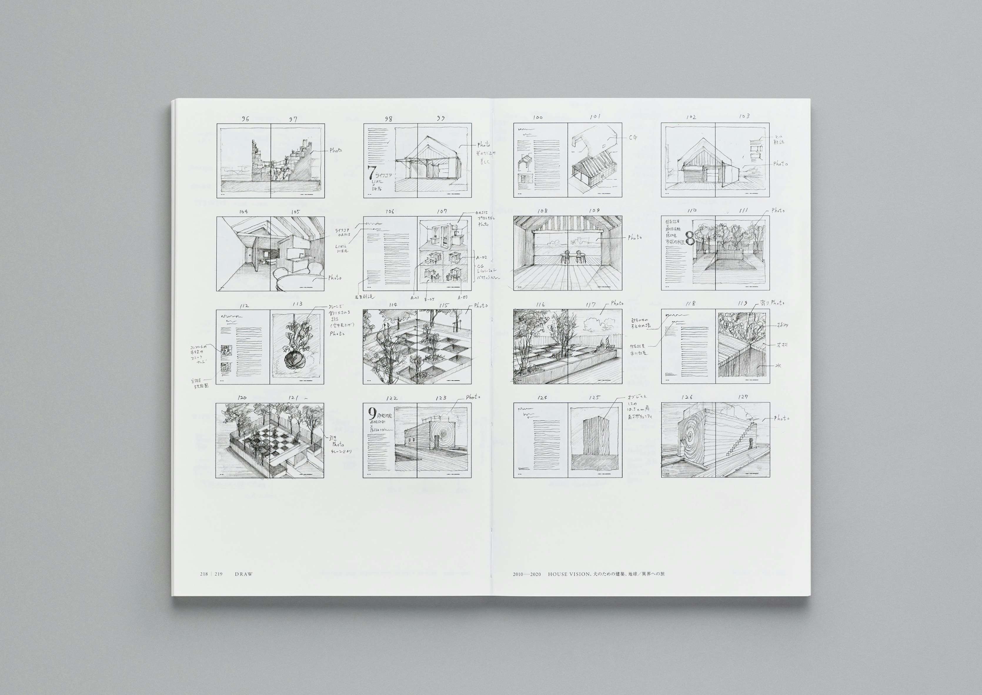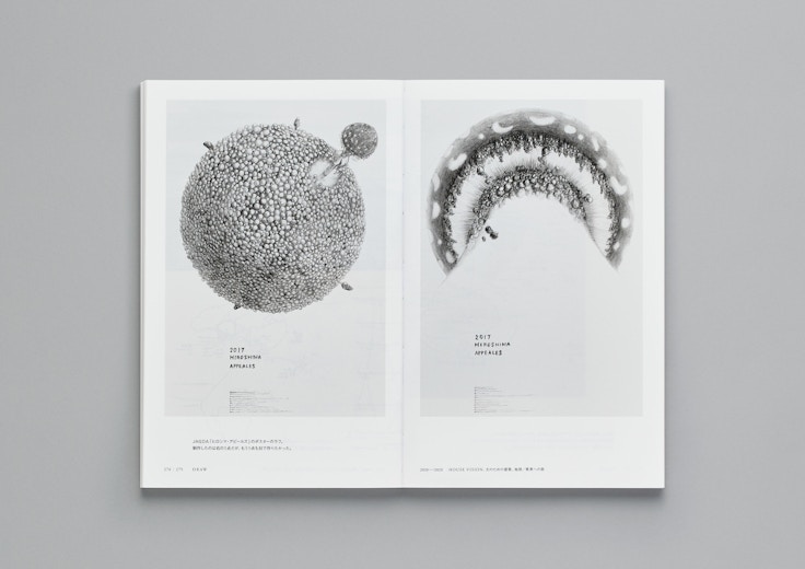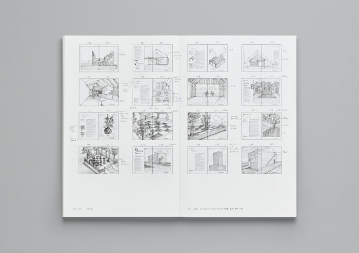 会場では、心に浮かんだ造形を外に取り出すようにして描かれたドローイング作品や、目の前の課題に応答する思考の跳躍の痕跡としての素描、展示の構想や設計をしながら編み上げられた書籍のラフスケッチなどを展示。1枚のポスターから未来構想に至るまで、手を動かし描くことで生み出されるクリエイティブの原像を紹介する。
