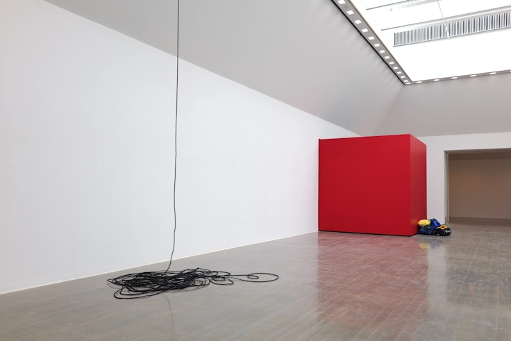 また《デコレータークラブ─プリングタイム》(2026)は、天井から吊り下げられたロープをどこまでも引き出せる作品だ。それなりの重さのあるロープは、どこまでも引っ張り続けることができ、足元には大量のロープが山のように溜まっていく。掃除機のコードのようにいずれは終わりが来るだろうという予想は延々と裏切られ続け、この事前の見立てが通用しないということに作品の根幹があることがわかる。