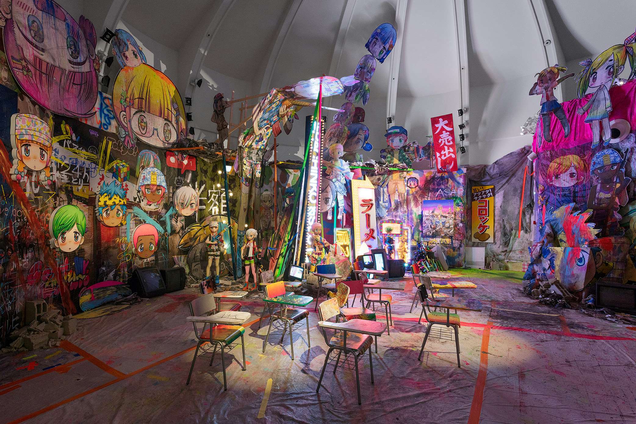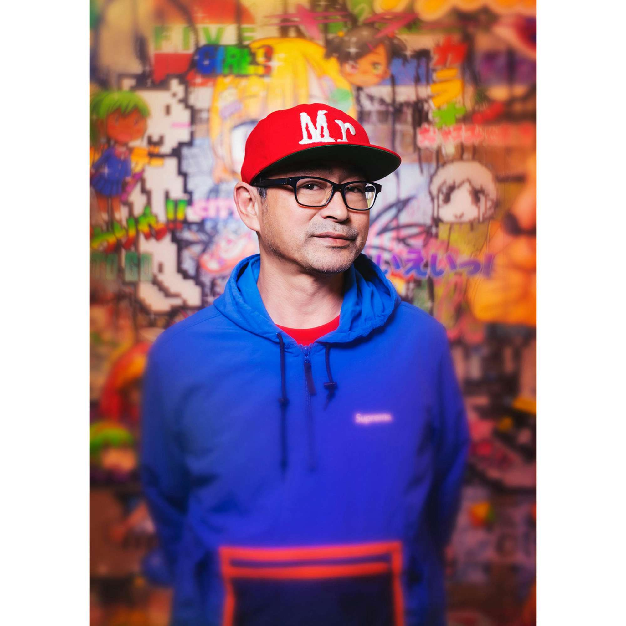 Mr.(ミスター)は1969年生まれ。カイカイキキ所属アーティスト。96年のデビュー以降、日本のアニメ、マンガ、ゲーム、オタク文化といったサブカルチャーを取り込み、日本固有のポップカルチャーを現代アートの文脈で昇華させた独自の表現を展開してきた。村上隆が提唱した「スーパーフラット」(*)の重要な担い手として知られ、幼少期の記憶やアニメ的キャラクター、元ヤンキーとしてのストリート的な感性を用いて、現代日本のカオス的な状況を再構築している。