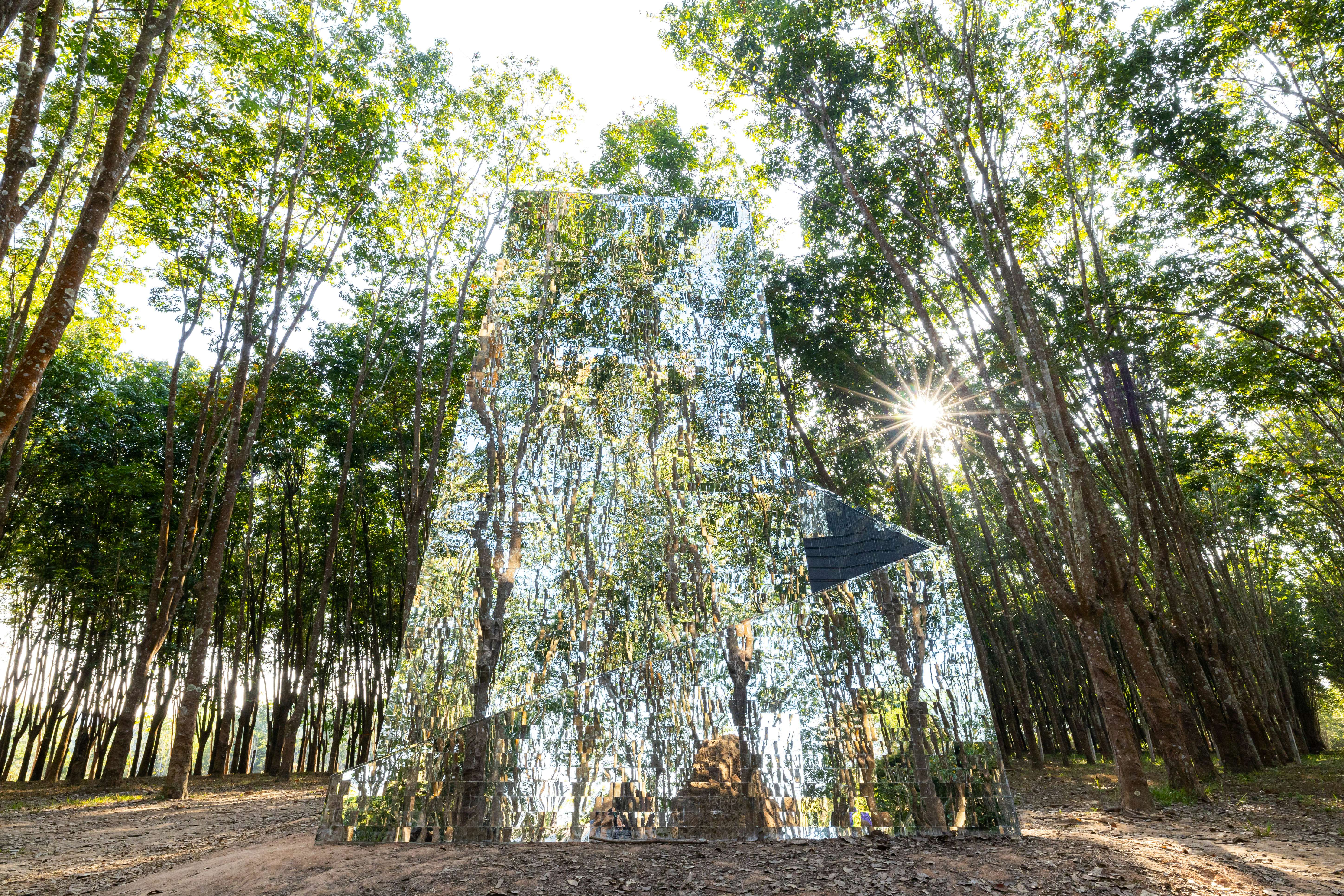 サニタス・プラディッタスニーの《ザ・サウンド・オブ・ナオシマ》は、周囲の自然に溶け込むかのように屋外に設置。「直島八十八箇所」に敬意を抱き、禅の公案である「隻手の声―片手で鳴らす音を心耳をもって聞く」という経験を通じてのみ理解できるマインドフルネスの状態からから本作を着想。タイの伝統的な技法や直島にあった素材を組み合わせた、瞑想体験に誘うストゥ―パ(仏塔)を中心に構成される。