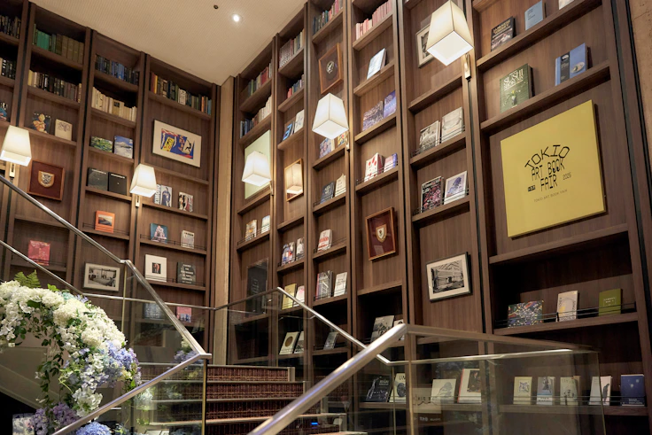 会場となる芝パークホテルは1948年創業。2020年には「人、街、歴史をつなぐLibrary Hotel」をコンセプトに、館内に約2000冊の書籍を備えた空間へとリニューアルした。フェア期間中は、ホテルのライブラリーでアートブックが展示販売されるほか、特設のラウンジエリアではドリンクやフードも提供。ホテルならではの空間を生かした会場づくりが特徴となる。