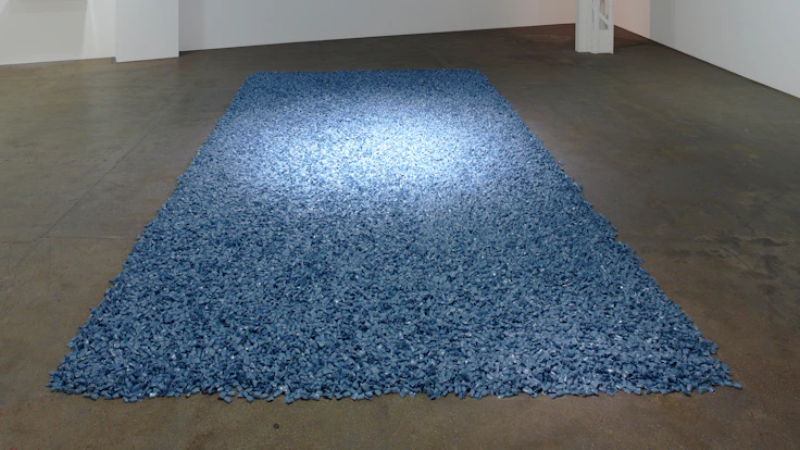本展ではゴンザレス=トレスの青いキャンディを、セーヌ河を流れる氷塊に、電球を用いた作品を沈む夕陽に見立てて展示。異なる手法ながら愛する人の不在を見つめ、その不在を作品として結晶化するという。