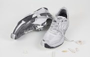 今回の新作は、播磨が資本主義経済や消費の問題への興味から、2016年の夏に訪れたポーランドでの経験をもとに構想した。本展では3体の人物像の彫刻作品と、彼らの持ち物とされるバッグや靴などをかたどった彫刻作品、ポーランドから持ち帰ったものの断片で構成されたコラージュ作品がインスタレーションとして展開される。