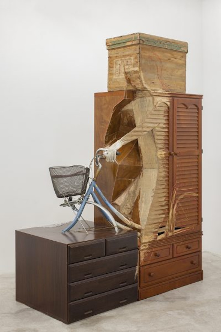 1968年宮城県生まれの青野文昭は、宮城教育大学大学院在学中の90年代から、「修復」をテーマに制作をつづけてきた。その制作方法は、空き地や海岸にうち捨てられたものの断片を拾い、その欠損部分を知識や想像力で「なおす」というもの。東日本大震災の後には、被災物を用いた作品にも取り組んできた青野。欠落した部分を通して他者の記憶と向き合い、そこに自身の想像に基づく新しいかたちを与えながら、「復元」を行っている。