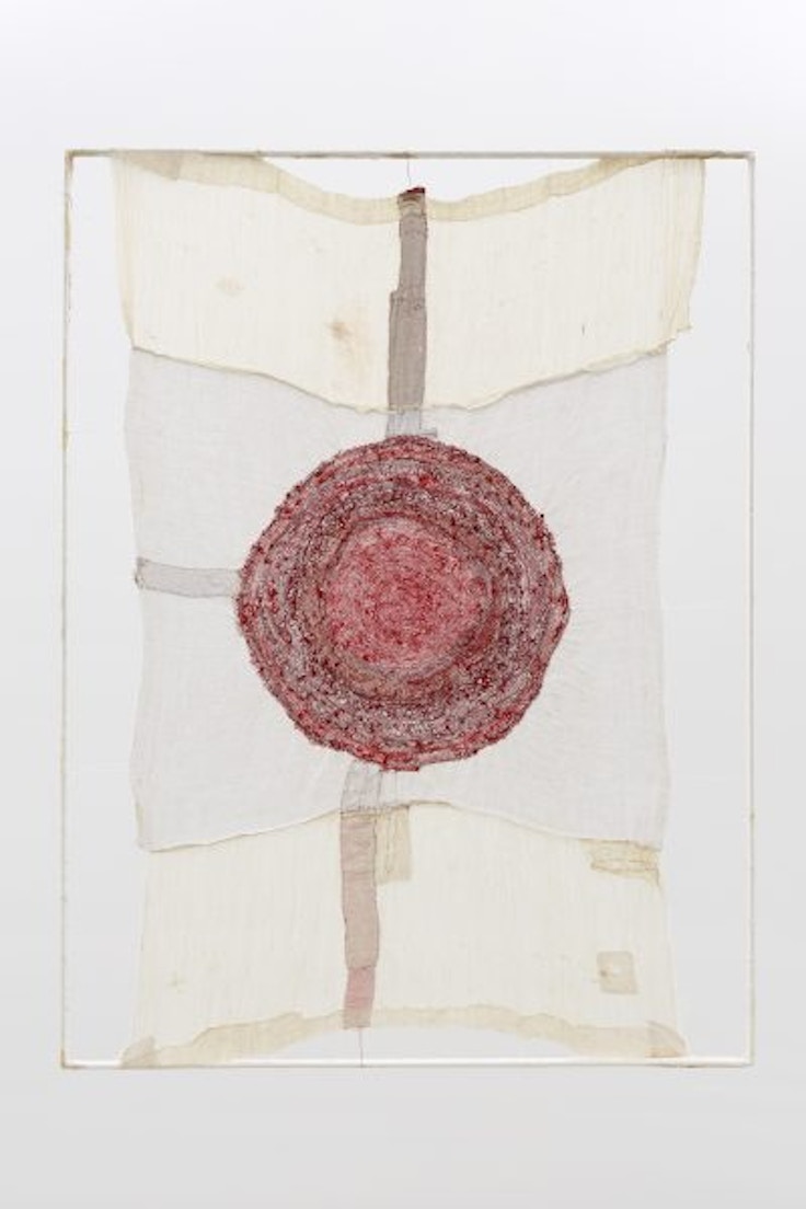 1963年埼玉県生まれの沖潤子は、2002年より母が残した布に自己流の刺繍を始めた。17年に「第11回shiseido art egg」に選出され、6月30日から7月23日まで資生堂ギャラリーで個展を開催。古い布やボロに、下絵を描かずに施される縦横無尽に広がる刺繍には、布が経てきた時間や沖自身の時間が刻み込まれている。