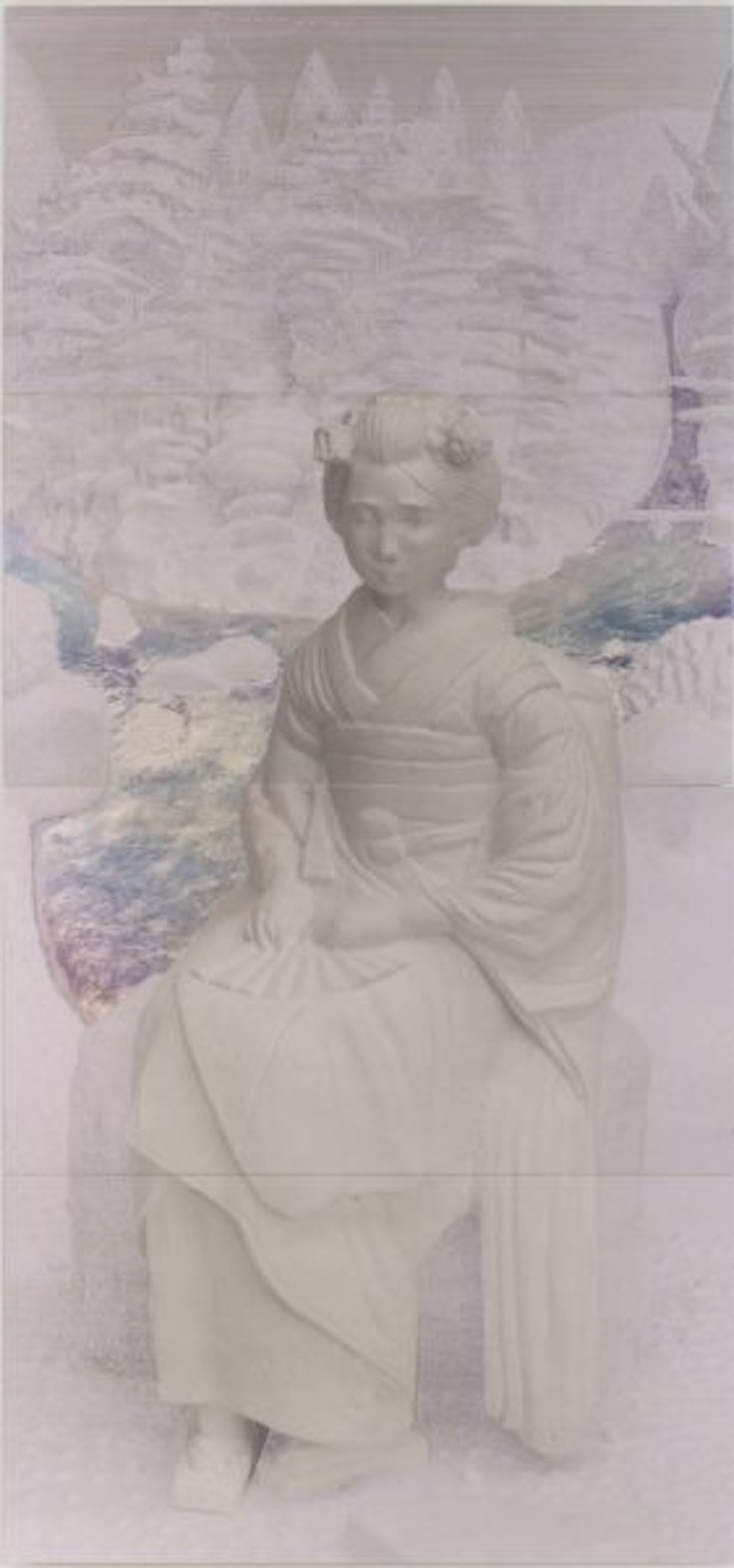美術史上の名画を立体化してジオラマを制作し撮影、その写真の上に銅版画やペインティングを重ね、既存の絵画を再構築する手法で作品を制作する山田。