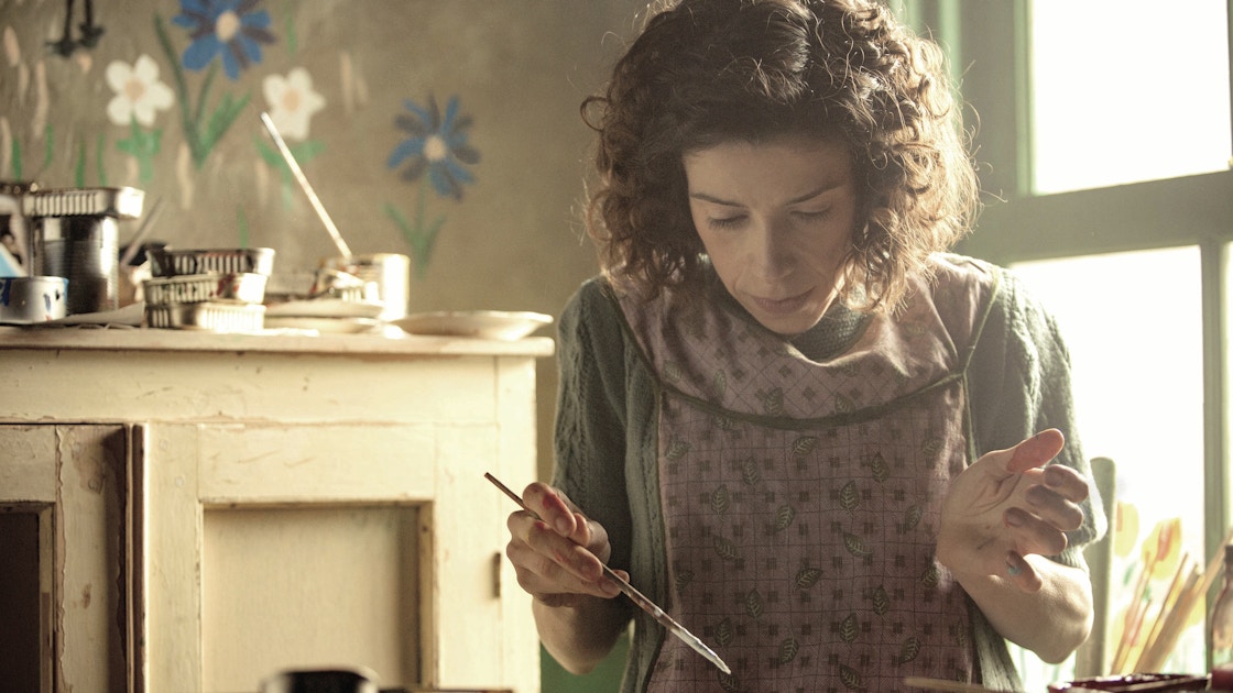 モードを演じたのは『ブルージャス ミン』(2013)でアカデミー賞助演女優賞にノミネートされたサリー・ホーキンス。絵本作家の両親を持つホーキンスは、本作のために素朴派画家の絵画クラスに数ヶ月間通ったという。実際のモードの画風を忠実に再現し、数多くの絵が作中で描かれていく様子は本作のハイライトと言えるだろう。