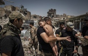大賞などを含め、受賞作品を紹介するこの展覧会は「現代社会の問題」「一般ニュース」「長期取材」「自然」「人々」「スポーツ」「スポットニュース」「環境」の8部門で構成。イラク軍特殊部隊の兵士によって手当てを受ける身元不明の男児を写した写真、あるいはインド洋のマリオン島で、岩に覆われた海岸線を通り抜ける「イワトビペンギン」の写真など、多種多様な被写体・状況が収められている。