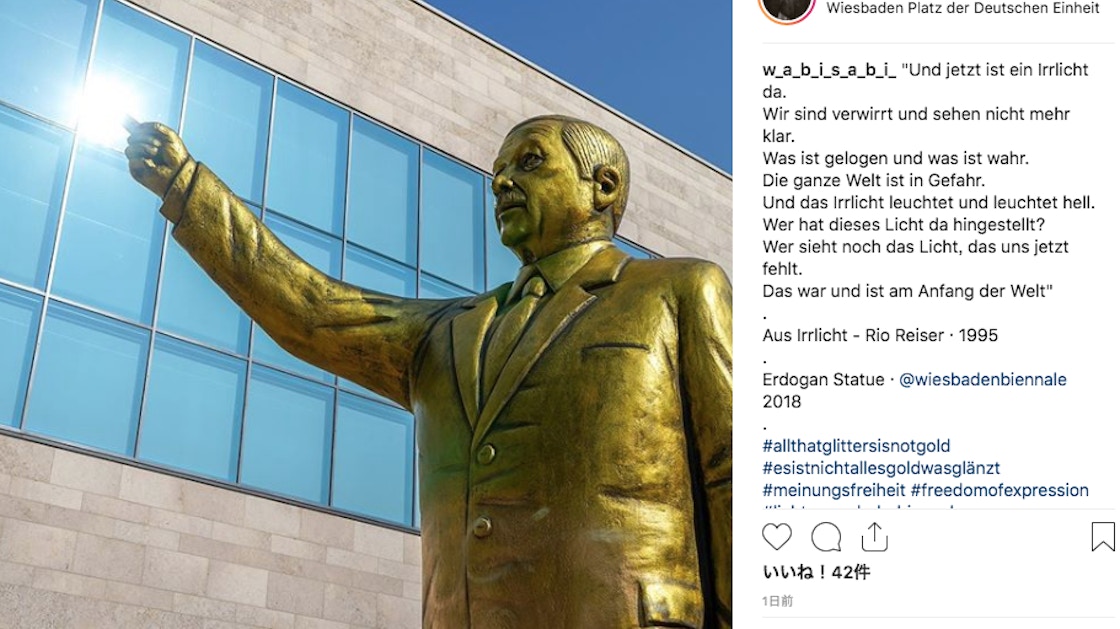この騒動を受け、市の広報担当者は「像がエルドアンであることに気づかなかった」と釈明。いっぽう、ビエンナーレ会場のひとつであるウィスバーデン州立劇場の芸術監督、ウヴェ・エリック・ラウフェンベルクは「表現の自由。エルドアンに対する議論するためにこの像は設置された」として表現の自由を主張した。