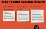 発端となったのは、2017年12月、アメリカを代表するスーパーリアリズムのアーティスト、チャック・クロースが複数の女性に対してセクシャル・ハラスメントを行ったというニュースだ。世界の70を超える美術館に作品が所蔵され、政界ともコネクションを持つクロースの作品は美術館でどのように扱われるべきか、いまだに大きな注目が集まっている。