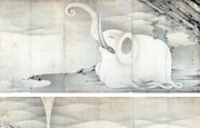 このほか、本展には若冲の肉筆画でもっとも質が高い作品のひとつとされる《紫陽花双鶏図屏風》(18世紀、エツコ&ジョー・プライスコレクション)や、山下が《動植綵絵》に匹敵すると評する《旭日鳳凰図》(1755、宮内庁三の丸尚蔵館蔵)、《象と鯨図屏風》(1797、MIHO MUSEUM蔵)、あるいは曽我蕭白《雪山童子図》(1764頃、三重・継松寺蔵)や《群仙図屏風》(1764、文化庁蔵、展示期間:3月12日〜4月17日)、長沢芦雪《白象黒牛図屏風》(18世紀、エツコ&ジョー・プライスコレクション)、狩野山雪《梅花遊禽図襖絵》(1631、京都・天球院蔵)、白隠《半身達磨図》(18世紀、大分・萬壽寺蔵)など、そうそうたる作品が並ぶ。
