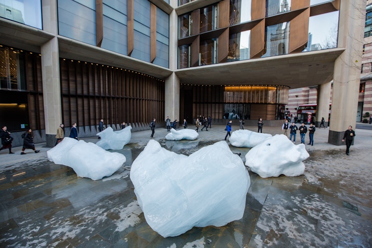 12月11日、デンマーク・コペンハーゲン生まれのアーティスト、オラファー・エリアソンが、地質学者のミニック・ロージングと協力してロンドン中心部の2ヶ所で解けてゆく氷の塊を展示した。この氷の塊は、エリアソンの屋外インスタレーション「アイス・ウォッチ」シリーズの最新作《アイス・ウォッチ・ロンドン》(2018)だ。