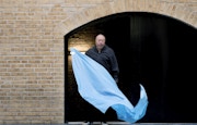 過去に数十の国を訪問し、何百人もの難民と出会ったアイ。バングラデシュでは、非常に暑く、つねに雨が降っている季節に、すべての人が素足だった姿に触発され、人々の泥まみれの足跡を集めていた。今回の旗は、それらの足跡をモチーフにデザインしたものだ。