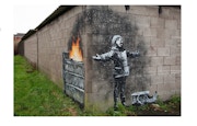 新作は、イギリス・ウェールズ地域のポート・タルボットに出現。ガレージの壁面に描かれた本作は、片面では雪が降るのを楽しんでいる子どもの姿を描写している。しかし、もう片面を見ると、その「雪」が燃えている火から発せられた灰であることが明らかになる。作品が描かれた場所の背後には、溶鉱炉の煙突があり、本作はそれを引用したもの。