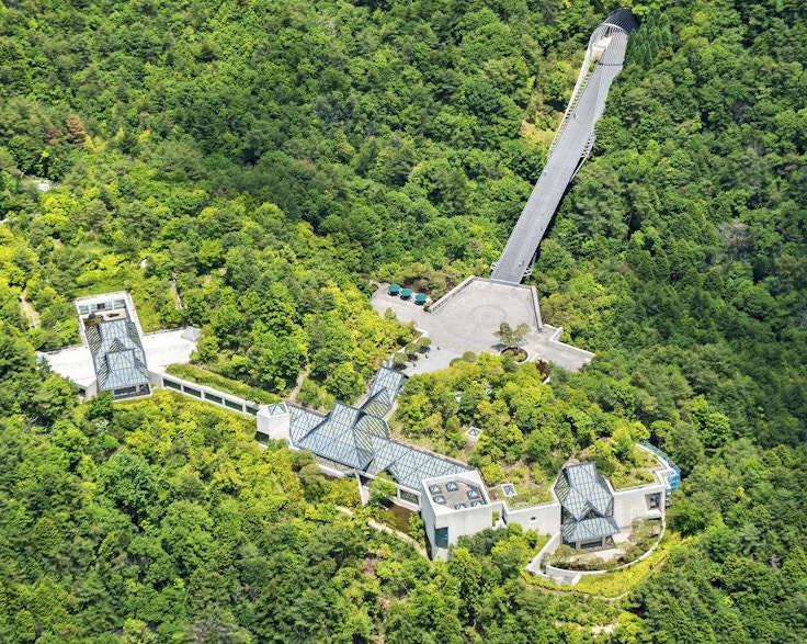 2017年にルイ・ヴィトンがコレクションを発表したことで大きな注目を集めたMIHO MUSEUMは、桜並木からステンレスで覆われたトンネルを経るアプローチや、入母屋風のガラス屋根から自然光が降り注ぐエントランスなど、様々な特徴を有する。
