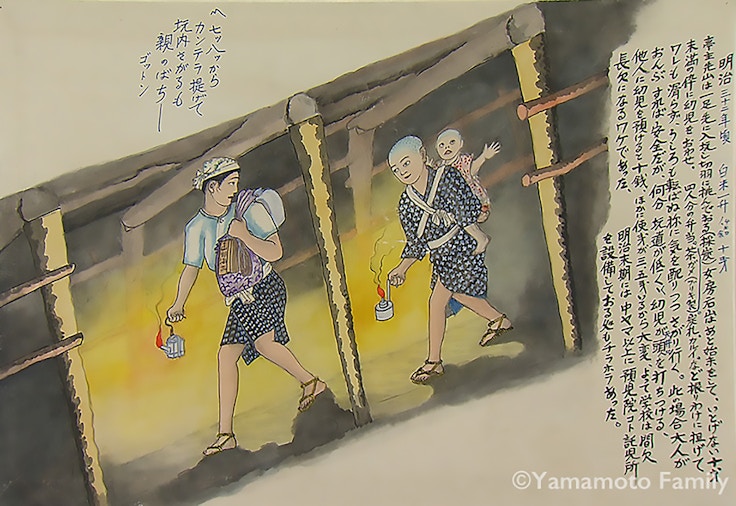 作兵衛は福岡県の筑豊炭田で、幼い頃から働いた生粋の炭坑夫。自らが体験した労働や生活を子や孫に伝えるため、60歳も半ばを過ぎて制作を開始。専門的な絵の教育は一度も受けておらず、2000枚とも言われる絵を残した。