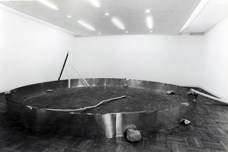 例えば、「もの派」を代表するアーティスト・菅木志雄は仙厓と共演。仙厓の《円相図》(19世紀)に応答し、円形のステンレス板と木や石などを組み合わせた《支空》(1985)を再制作するほか、新作も発表する。