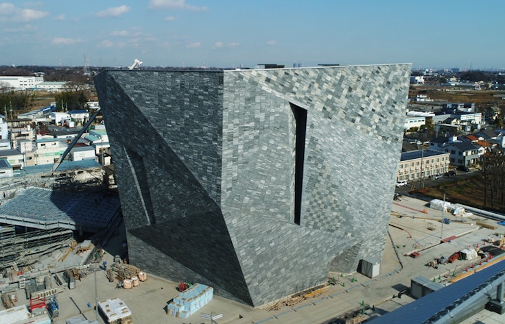 設計を手掛けたのは、世界で活躍し、2020年東京オリンピック・パラリンピックの会場となる国立競技場の設計に携わった建築家・隈研吾。水面に浮かぶ高さ30メートルの巨大な岩をモチーフにした建物は、外壁に1つおよそ50kg〜70kgの花崗岩を約2万枚使用している。それぞれの石の色や荒い表面、建物全体で織りなす複雑な多角形は、太陽が照らす角度によって様々な表情を見せ、自然に回帰しつつある21世紀建築の姿を表している。