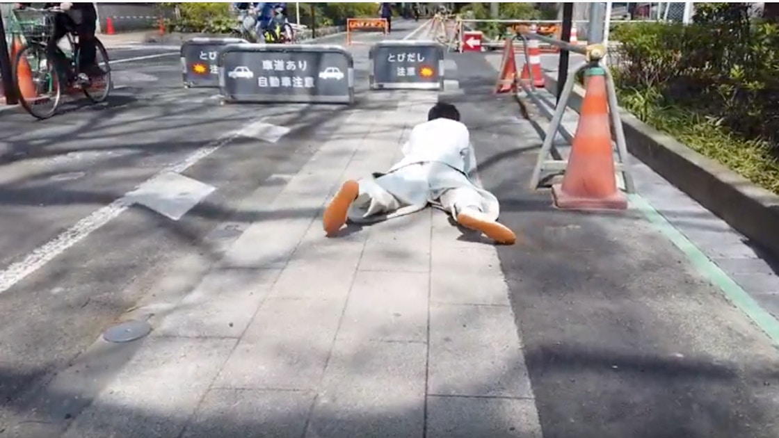 現在、遠藤のYouTubeチャンネルで公開されている「ほふく前進御百度参り」プロジェクトは、武蔵一宮氷川神社の参道を這いつくばりながら踏破しようという試みだ。20年2月よりスタートした同プロジェクトは、現時点で57回目。今年の5月17日に最終回を迎える(予定)。