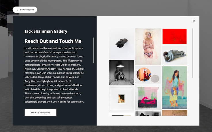 今回のビューイングでは、コロナ禍を反映した展示や作品も見られる。例えば、ジャック・シャインマン・ギャラリーは「Reach out and touch me」をテーマに、ソーシャル・ディスタンスが求められている時代において、身体の親密さやその力を強調する作品を紹介。ジャべり・コンテンポラリーでは、シムリン・ギルやムリナリーニ・ムケルジーらによる、ロックダウンのなかで自然がふたたび都市空間に戻るというテーマの作品を展示している。