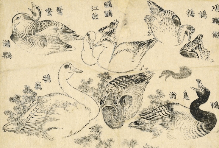これらの作品は、『万物絵本大全図』という本のために制作された挿絵で、北斎が代表作《富嶽三十六景》(1831〜33頃)を手掛ける直前に制作したものだ。1948年まではフランスのコレクター兼アール・ヌーヴォーの宝飾商であるアンリ・ヴェヴェールに所有されており、その後はオークションに出品され、約70年間パリの個人コレクションに所蔵。昨年はふたたび公開され、大英博物館がイギリスの慈善団体「アート・ファンド」による支援を得て購入した。