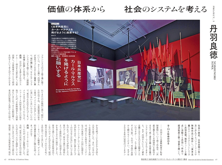 PART2では国内外の「資本主義をとらえ直すアーティストの実践」を紹介。旧植民地の経済システムに介入し、格差を是正する活動を展開する、オランダ人アーティストのレンゾ・マルテンス。価値の体系から社会のシステムを考える丹羽良徳。私的空間から、資本主義と言語の関係を問うアマリア・ウルマンなどへのインタビューを掲載。また社会主義制度のベトナムの芸術センターで芸術監督を務める遠藤水城と、アーティストとしてシステムに包摂されずにメッセージを発信し続けてきたChim↑Pomの卯城竜太との対談も収録。それぞれの立場での資本主義との付き合い方を聞いた。