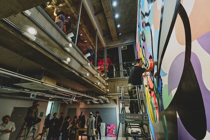 本施設のシンボルである大壁は、アーティストによって日々描かれ変化していく壁画。2フロアを貫通するこの大型壁画は、今後アーティストたちの発信の場として機能していく。また地下にはアートファクトリーを設置。アーティストに昼夜制作の場を提供すると同時に、来訪者には制作過程の熱を伝える狙いだ。