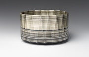 寄贈作品は金工で、伝統的な茶器から花器、大鉢、彫刻作品まで、幅広いジャンルと形態の作品が含まれている。そのうちの9点は重要無形文化財保持者、いわゆる「人間国宝」に認定された桂盛仁、中川衛、奥山峰石、大角幸枝、大澤光民、田口壽恒、玉川宣夫、三代魚住為楽、山本晃の作品。そのほかは、般若保、三代畠春斎、家出隆浩、飯野一朗、宮田亮平、押山元子、大槻昌子、佐故龍平、田中照一など、表現力豊かな作品と革新的な技法で知られる作家の作品9点だ。