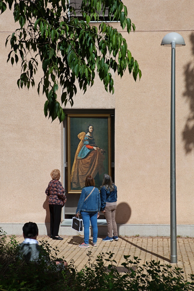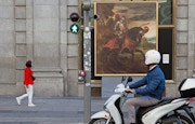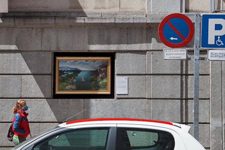 これは、同館がマドリード市議会やイベリア航空、テレフォニカと協力して実現したプロジェクト「Around the corner」。国際博物館の日を記念してスタートしたこのプロジェクトは、プラド美術館所蔵の絵画を実物大で再現した作品約20点を3週間にわたってマドリード市内の人通りの多い場所に展示し、日常生活に変化をもたらして美術館に訪問することを促すものだ。