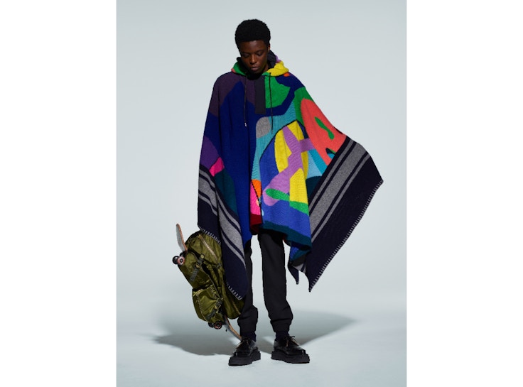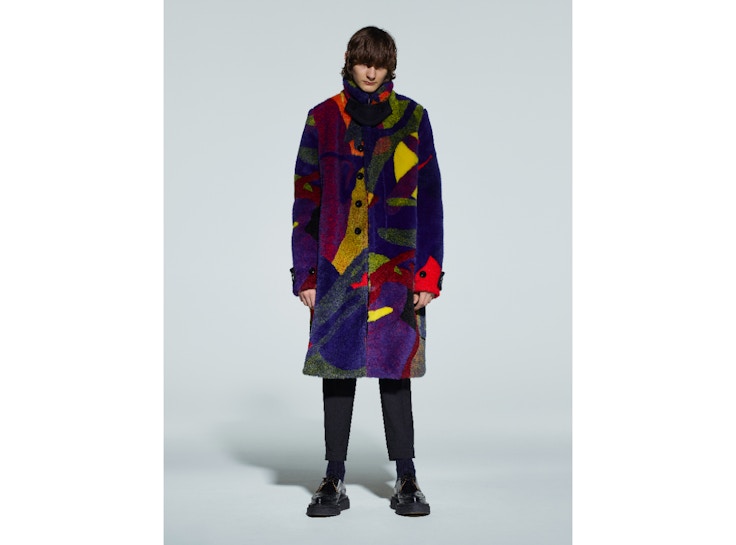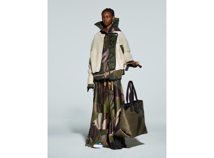 「sacai x KAWS」は「ウェアラブルアート」という概念を現代的に表現したコレクションで、KAWSのカラーパレットを、メンズとウィメンズのアイテムに忠実に再現。KAWSの特徴でもあるカラフルなマルチカラーとカモフラージュカラーの2色が展開される。メンズ・ウィメンズのほか、Tシャツやフーディーなどのユニセックスアイテム、キッズアイテムも店舗限定(sacai 青山、sacai the store)にてラインナップされる。