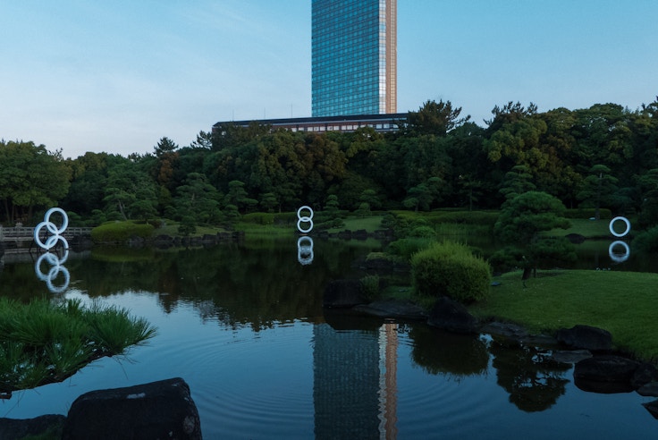 7月23日に開幕した東京オリンピック。同日、競技会場のひとつである「幕張メッセ」に隣接する日本庭園「見浜園」にてアーティスト・松田将英による屋外彫刻作品《Ripples》が公開された。