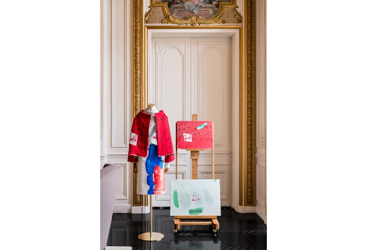 今回のコレクションの制作に参加したアーティストたちの多くは画家だ。これは、伝統的でありながら革新を続け、刷新可能な美であるという点で、アートにおける絵画の在り方とファッションにとってのオートクチュールの存在が似ているからだという。