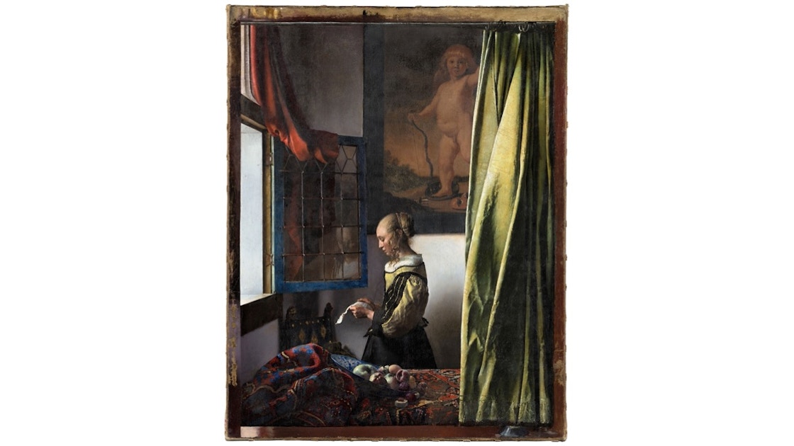 窓から光が差し込み、室内で手紙を読む女性の姿が描かれた本作。1979年のⅩ線調査で壁面にキューピッドの描かれた画中画が塗り潰されていることが判明された。