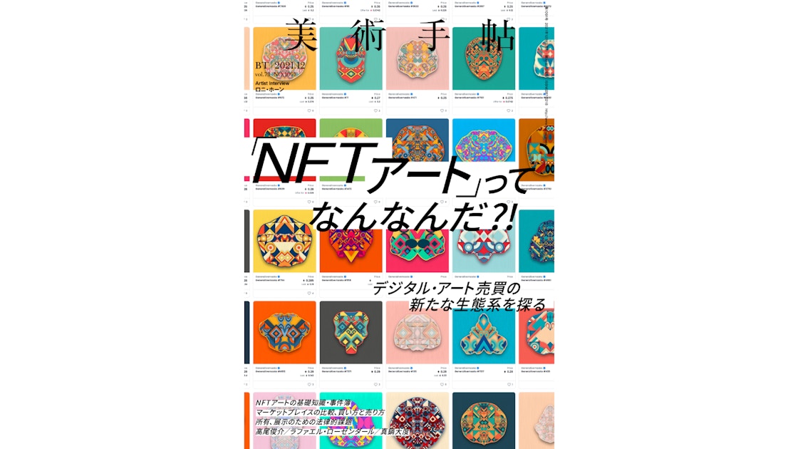 また最後には、1990年代のネットアートの黎明期から活動を続けるアーティスト・エキソニモと真鍋大度と高尾俊介による座談会を掲載。デジタル・アート販売の歴史からみた、NFTアートのポジティブな側面と未成熟な面、NFTアートのコミュニティの独自性や可能性、日本国内と海外の反応の違いなどを語り尽くす。